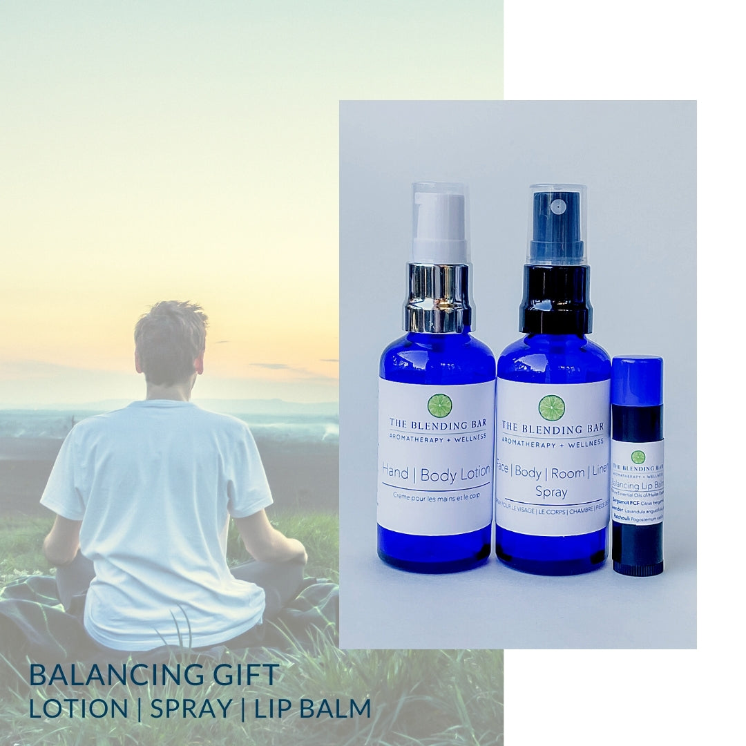 {"id":8789074892,"title":"Balancing | Scent Collection","handle":"balancing-pure-essential-oil-scent-collection","description":"\u003cp\u003eOne of our most popular blends, the combination of these oils is uplifting, calming, and grounding. Use during times of stress and to create a calm, inviting and uplifting environment. \u003c\/p\u003e\n\u003cp\u003e100% pure essential oils of Bergamot, Lavender, and Patchouli.\u003c\/p\u003e\n\u003cp\u003e\u003ca href=\"https:\/\/theblendingbar.ca\/blogs\/aromatherapy-with-amy-reedman\/how-to-choose-an-essential-oil-application\" data-mce-fragment=\"1\" rel=\"noopener noreferrer\" target=\"_blank\"\u003e\u003cspan data-mce-fragment=\"1\"\u003e\u003cstrong data-mce-fragment=\"1\"\u003eClick here to learn about the benefits + details of each product available below\u003c\/strong\u003e\u003c\/span\u003e\u003c\/a\u003e.\u003c\/p\u003e\n\u003cp\u003e\u003cstrong\u003eSave 15% with the Balancing Gift Set \u003c\/strong\u003eincluding our luxurious Hand + Body Lotion, popular Face | Body | Room | Linen Spray and nourishing Lip Balm, all in the Balancing scent!\u003c\/p\u003e","published_at":"2016-10-22T22:57:56-07:00","created_at":"2016-10-22T22:57:56-07:00","vendor":"The Blending Bar Aromatherapy","type":"Scent Collection","tags":["Balancing","Bergamot","Diffuser Blend","Grounding","Lavender","Patchouli","popular","Signature Scent","Stress","Uplifting"],"price":900,"price_min":900,"price_max":6900,"available":true,"price_varies":true,"compare_at_price":3800,"compare_at_price_min":3800,"compare_at_price_max":3800,"compare_at_price_varies":false,"variants":[{"id":51295364907321,"title":"Balancing Gift Set | Lotion, Spray \u0026 Lip Balm","option1":"Balancing Gift Set | Lotion, Spray \u0026 Lip Balm","option2":null,"option3":null,"sku":null,"requires_shipping":true,"taxable":true,"featured_image":{"id":52302709686585,"product_id":8789074892,"position":2,"created_at":"2025-10-28T14:54:43-07:00","updated_at":"2025-10-28T14:54:44-07:00","alt":null,"width":1080,"height":1080,"src":"\/\/theblendingbar.ca\/cdn\/shop\/files\/Balancing.jpg?v=1761688484","variant_ids":[51295364907321]},"available":true,"name":"Balancing | Scent Collection - Balancing Gift Set | Lotion, Spray \u0026 Lip Balm","public_title":"Balancing Gift Set | Lotion, Spray \u0026 Lip Balm","options":["Balancing Gift Set | Lotion, Spray \u0026 Lip Balm"],"price":3200,"weight":0,"compare_at_price":3800,"inventory_quantity":0,"inventory_management":null,"inventory_policy":"deny","barcode":"","featured_media":{"alt":null,"id":43869206511929,"position":2,"preview_image":{"aspect_ratio":1.0,"height":1080,"width":1080,"src":"\/\/theblendingbar.ca\/cdn\/shop\/files\/Balancing.jpg?v=1761688484"}},"requires_selling_plan":false,"selling_plan_allocations":[]},{"id":30325493388,"title":"Diffuser Blend 10ml","option1":"Diffuser Blend 10ml","option2":null,"option3":null,"sku":"","requires_shipping":true,"taxable":true,"featured_image":null,"available":true,"name":"Balancing | Scent Collection - Diffuser Blend 10ml","public_title":"Diffuser Blend 10ml","options":["Diffuser Blend 10ml"],"price":2600,"weight":0,"compare_at_price":null,"inventory_quantity":-23,"inventory_management":null,"inventory_policy":"deny","barcode":"","requires_selling_plan":false,"selling_plan_allocations":[]},{"id":30325515020,"title":"Diffuser Blend 30ml","option1":"Diffuser Blend 30ml","option2":null,"option3":null,"sku":"","requires_shipping":true,"taxable":true,"featured_image":null,"available":true,"name":"Balancing | Scent Collection - Diffuser Blend 30ml","public_title":"Diffuser Blend 30ml","options":["Diffuser Blend 30ml"],"price":6900,"weight":0,"compare_at_price":null,"inventory_quantity":-9,"inventory_management":null,"inventory_policy":"deny","barcode":"","requires_selling_plan":false,"selling_plan_allocations":[]},{"id":31942704758895,"title":"Roll On 10ml","option1":"Roll On 10ml","option2":null,"option3":null,"sku":"","requires_shipping":true,"taxable":true,"featured_image":null,"available":true,"name":"Balancing | Scent Collection - Roll On 10ml","public_title":"Roll On 10ml","options":["Roll On 10ml"],"price":2300,"weight":0,"compare_at_price":null,"inventory_quantity":-16,"inventory_management":null,"inventory_policy":"deny","barcode":"","requires_selling_plan":false,"selling_plan_allocations":[]},{"id":31942700204143,"title":"Face | Body | Room | Linen Spray 60ml","option1":"Face | Body | Room | Linen Spray 60ml","option2":null,"option3":null,"sku":"","requires_shipping":true,"taxable":true,"featured_image":null,"available":true,"name":"Balancing | Scent Collection - Face | Body | Room | Linen Spray 60ml","public_title":"Face | Body | Room | Linen Spray 60ml","options":["Face | Body | Room | Linen Spray 60ml"],"price":1500,"weight":0,"compare_at_price":null,"inventory_quantity":-36,"inventory_management":null,"inventory_policy":"deny","barcode":"","requires_selling_plan":false,"selling_plan_allocations":[]},{"id":31942701482095,"title":"Hand | Body Lotion 60ml","option1":"Hand | Body Lotion 60ml","option2":null,"option3":null,"sku":"","requires_shipping":true,"taxable":true,"featured_image":null,"available":true,"name":"Balancing | Scent Collection - Hand | Body Lotion 60ml","public_title":"Hand | Body Lotion 60ml","options":["Hand | Body Lotion 60ml"],"price":1600,"weight":0,"compare_at_price":null,"inventory_quantity":-4,"inventory_management":null,"inventory_policy":"deny","barcode":"","requires_selling_plan":false,"selling_plan_allocations":[]},{"id":31942701285487,"title":"Hand | Body Lotion 240ml","option1":"Hand | Body Lotion 240ml","option2":null,"option3":null,"sku":"","requires_shipping":true,"taxable":true,"featured_image":null,"available":true,"name":"Balancing | Scent Collection - Hand | Body Lotion 240ml","public_title":"Hand | Body Lotion 240ml","options":["Hand | Body Lotion 240ml"],"price":3400,"weight":0,"compare_at_price":null,"inventory_quantity":-8,"inventory_management":null,"inventory_policy":"deny